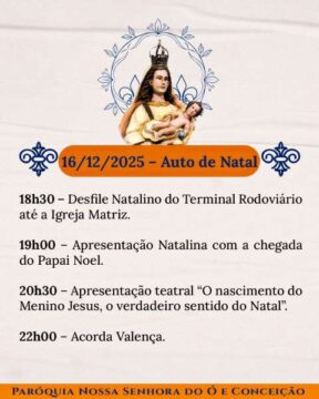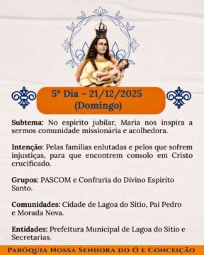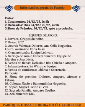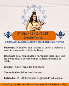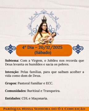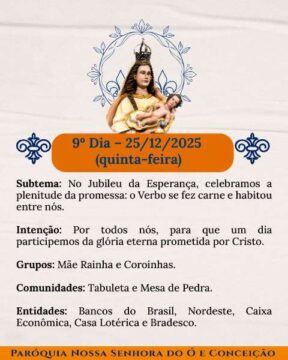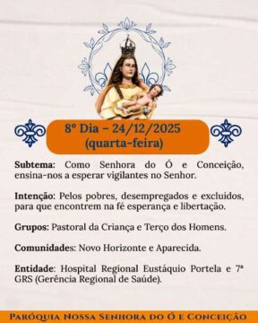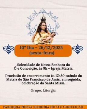 Chegou o tempo de caminhar juntos, dia após dia, celebrando a nossa Mãe do Ó e Conceição com devoção, firmeza e aquele calor bonito de comunidade que não se perde. Cada noite tem um sentido, uma intenção, um convite de Deus para o nosso coração.