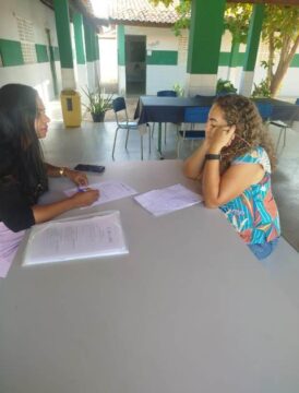 A equipe foi composta pela Psicopedagoga Rosa Campelo e pela Assistente Social Iraildes Barbosa, que trabalharam juntas para coletar informações valiosas sobre o AEE no contexto escolar.