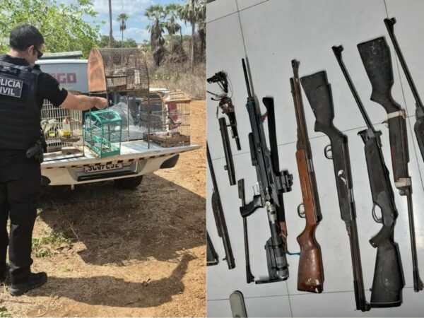 Uma Ação realizada no último sábado 29 de novembro mobilizou uma operação integrada entre a Polícia Civil, por meio da 7ª Seccional e Delegacia Regional de Valença do Piauí, e equipes da Força Tática do 23º BPM e do GPM de Aroazes, resultou na prisão de três homens em Aroazes, no Piauí, após divulgarem nas redes sociais vídeos exibindo armas de fogo e animais silvestres abatidos.