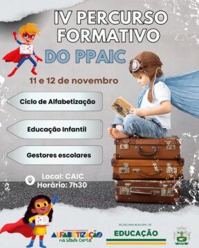 A Secretaria Municipal de Educação (SEME) de Valença do Piauí, sob a gestão da secretária de Educação, professora Iara Costa, e com o apoio da Prefeitura Municipal, gestão do prefeito Marcelo Costa, está realizando o “IV Percurso Formativo do PPAIC“. O evento teve início às 07h30 da manhã desta terça-feira, 11 de novembro, e seguirá até amanhã 12 de novembro, no auditório da Unidade Escolar Oto Martins Veloso (CAIC).