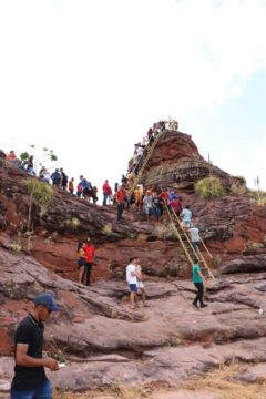 – Fé: Os fiéis fazem filas para subir até a Pedra de São Francisco.
